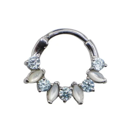 Ce bijou de piercing Eventail est spécialement conçu pour les piercings daith et septum, avec un anneau en acier.